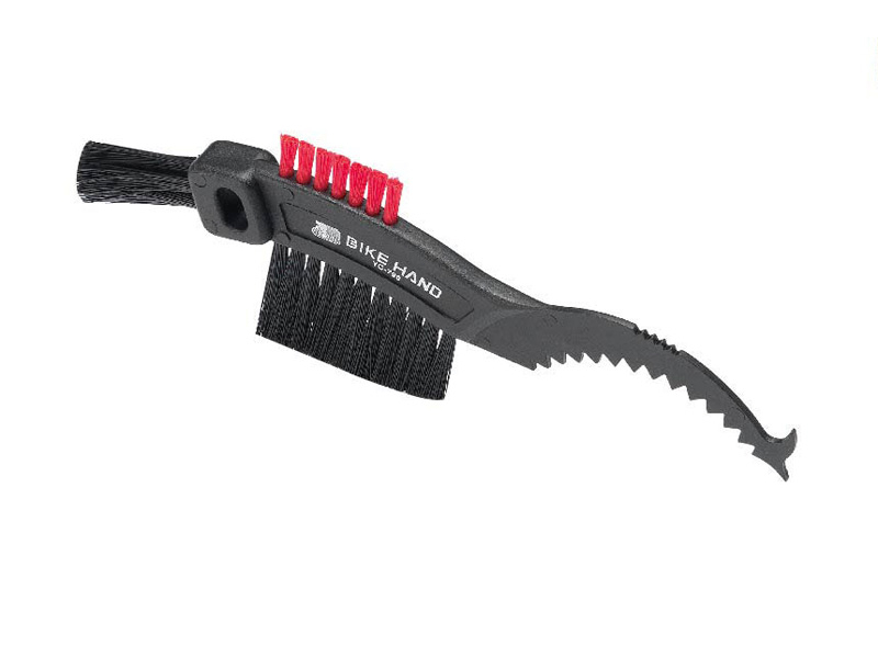 Čistiaca kefa s integrovanou škrabkou pre jednoduché čistenie reťazových pastorkov a prevodníkov, tuhé vlákna rôznych dĺžok uľahčujú odstránenie nečistôt z tažko dostupných miest (kladky prehazovačky, medzery reťazových viacekoliesok, prevodníky, prešmýkače, prehazovačky).