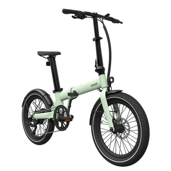 EOVOLT AFTERNOON je skladací, ľahký a ultra kompaktný elektrobicykel na 20 palcových kolesách s odpruženou pneumatickou prednou vidlicou.