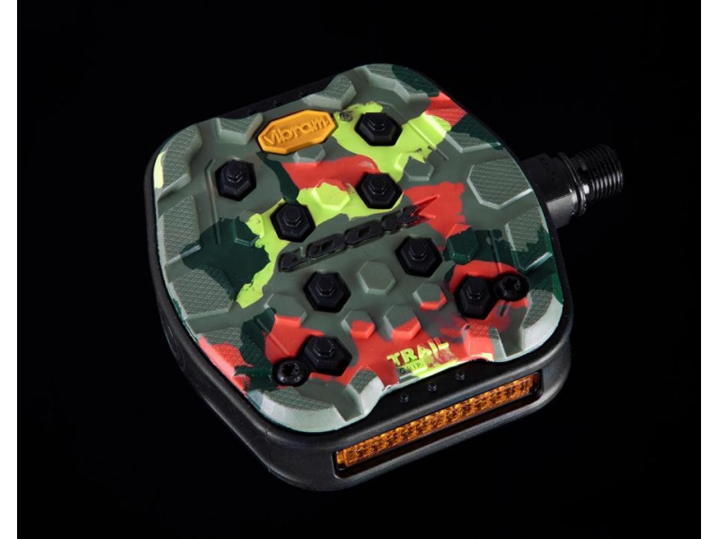 • Štyri rôzne push-fit vložky s farebnou voľbou: červená, neónová limetková, čierna alebo šialená kamufláž robia vaše pedále rovnako individuálne ako ste vy.