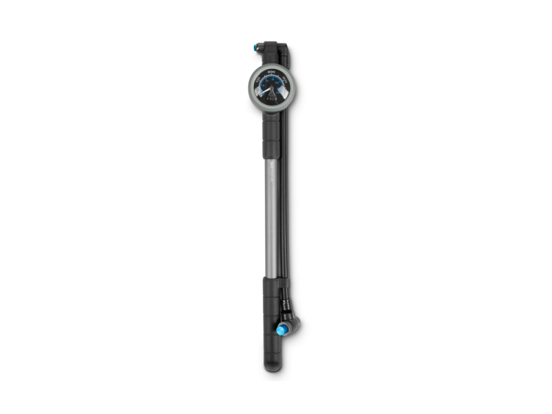 Špičková pumpa na tlmiče obsahuje dvojstupňovú hlavu pre ventily Schrader, ktorá zabraňuje úniku vzduchu z tlmiča pri odskrutkovaní. Vhodná pre vyššie tlaky až do 400 psi a s ergonomickou, prírodne tvarovanou rukoväťou. Na zaistenie dokonalého nastavenia odpruženia príde vhod presný tlakomer a odvzdušňovací ventil na mikroúpravy.
