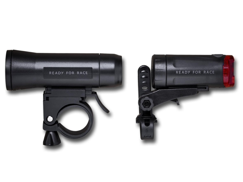 3-wattové predné svetlo vydáva 15 luxov svetelného výkonu a je pripevnené k riadítkam pomocou kvalitnej konzoly s možnosťou otočenia o 60° pre dokonalé nastavenie. Zodpovedajúce 3-wattové zadné svetlo je pripevnené pomocou univerzálného držiaka. Obidve svetlá sú odolné voči striekajúcej vode, vďaka čomu sú ideálne pre použitie vo vlhkom počasí a samozrejme v súlade s nemeckými predpismi o cestnej premávke (StVZO). Svetlá sú dodávané vrátane batérií.