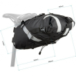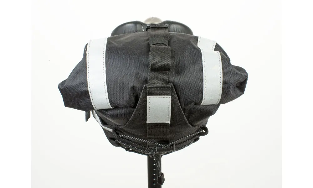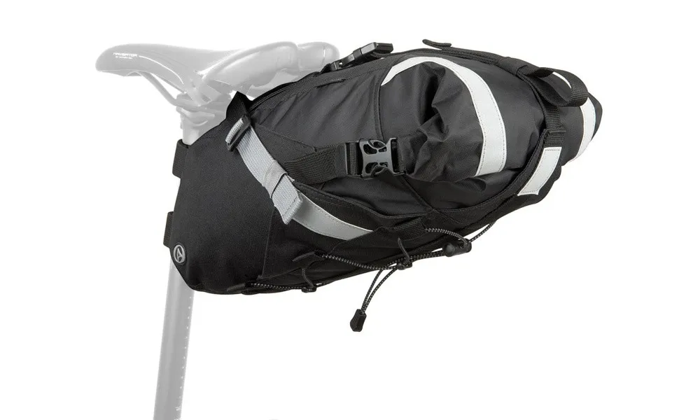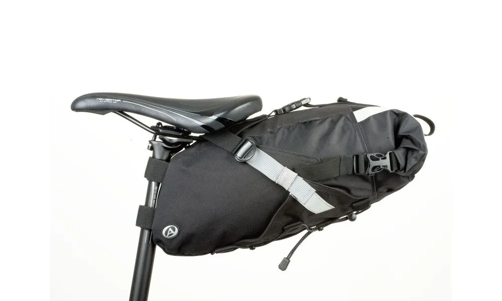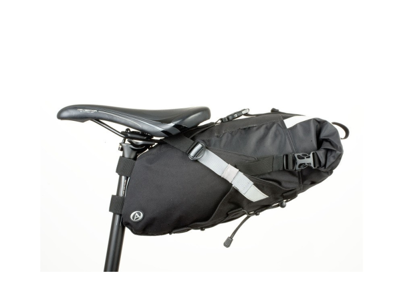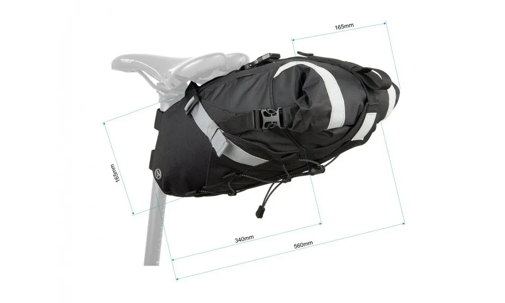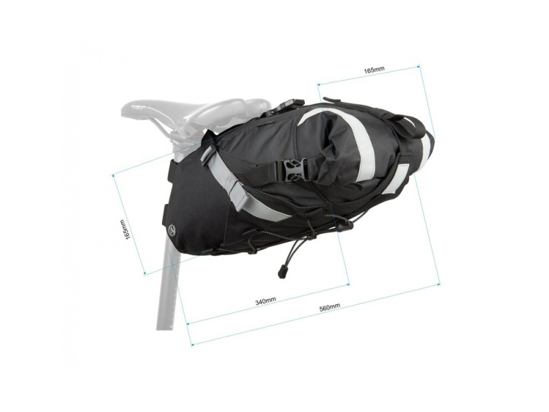 Veľkoobjemová taška pod sedlo AUTHOR, univerzálne pevné uchytenie na väčšinu sediel/sedloviek pomocou popruhov pre extrémne zaťaženie v teréne, jednoducho meniteľný objem 6 - 12 litrov, reflexné doplnky, pútko pre blikačku, použitý materál nylon 600D/420D s PU záterom je tkanina s vysokou pevnosťou, vode a vetru odolná, hmotnosť 335 g.